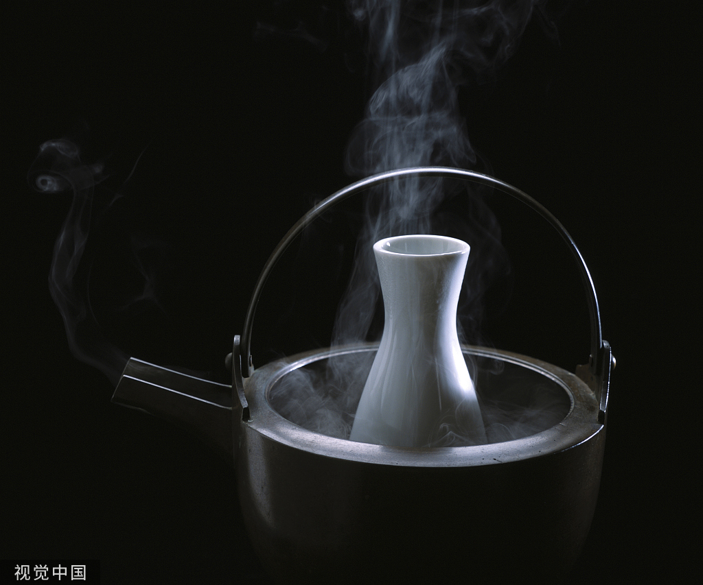 Heat a pan of water to the appropriate temperature and then put a tokkuri into the pan.